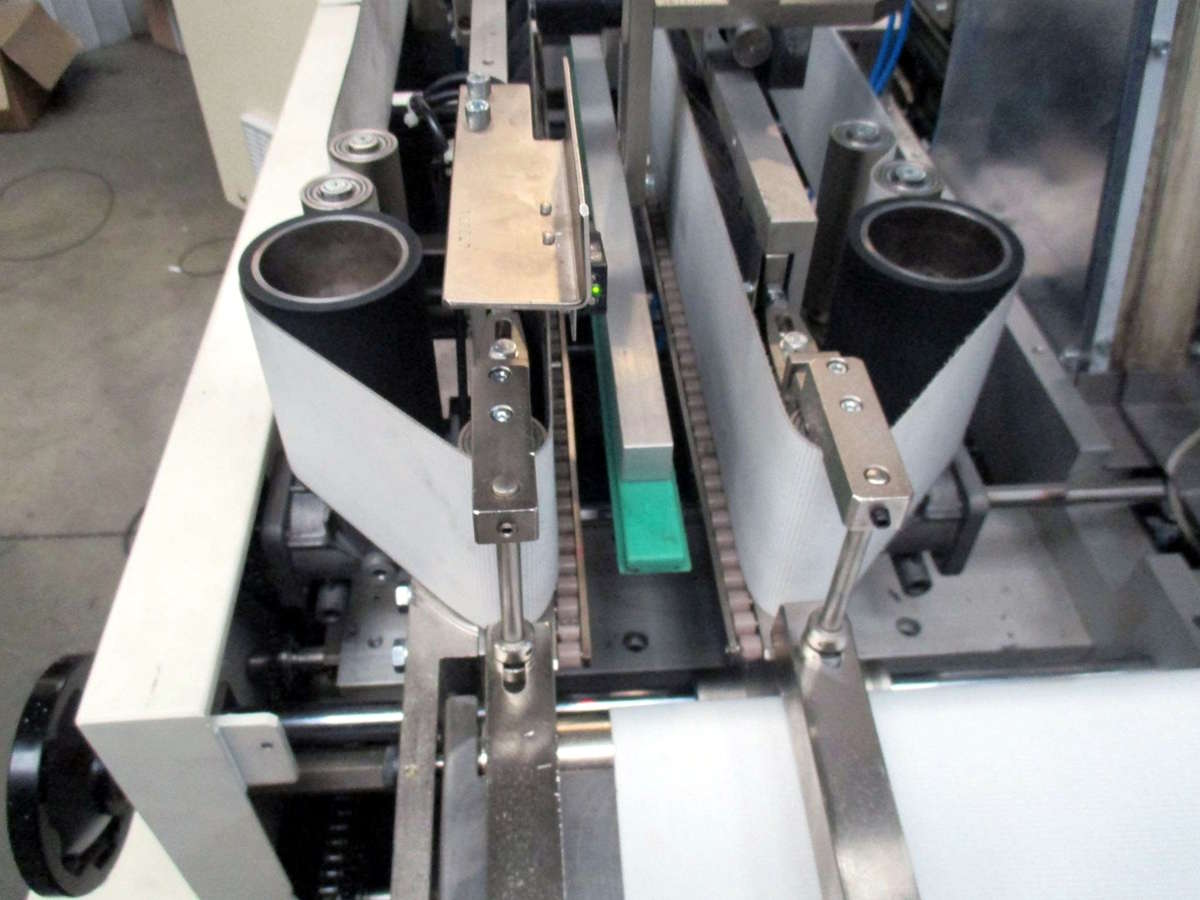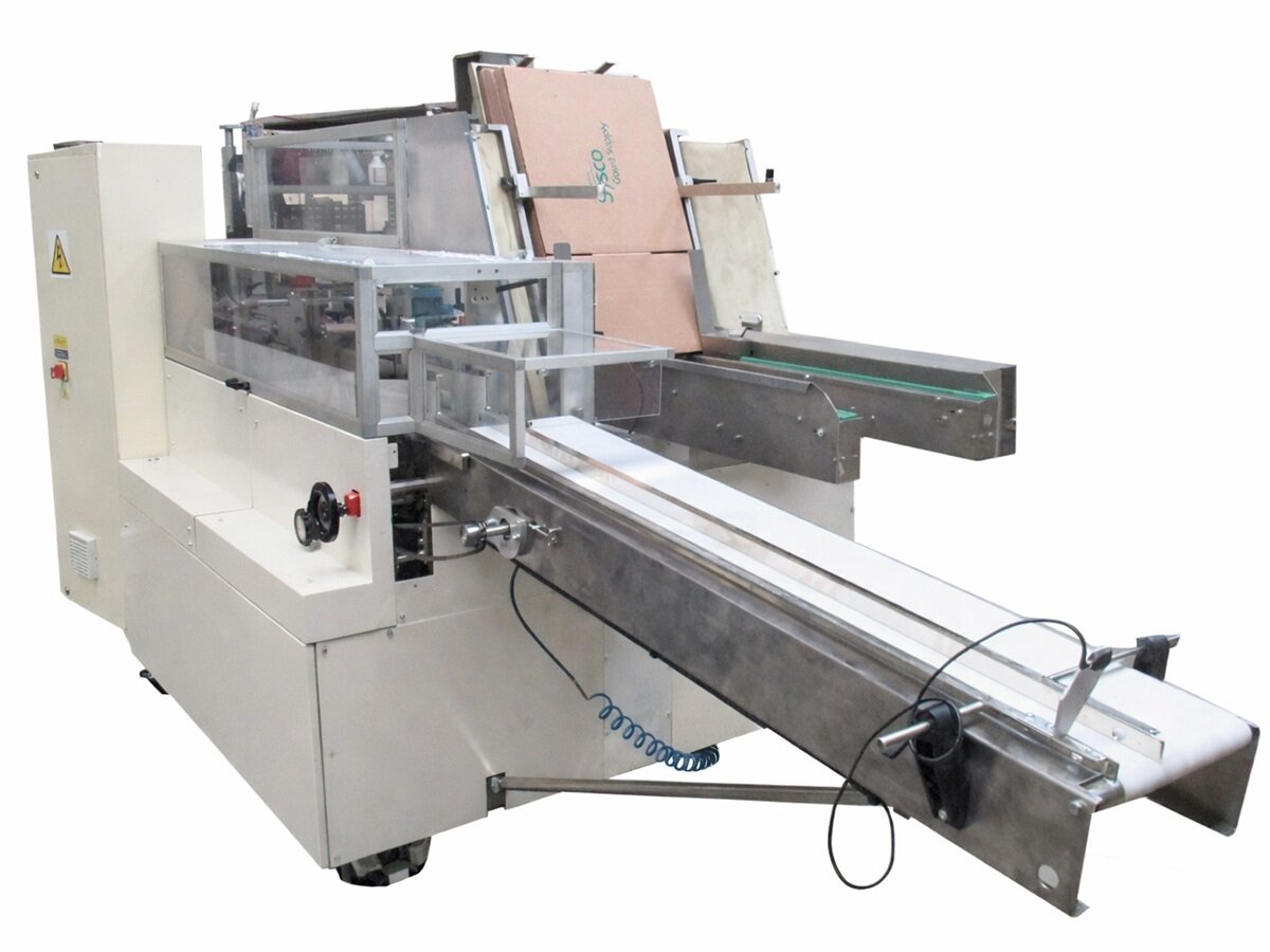 Format (size group) adjustments can be completed without tools, with settings guided by digital position indicators. A case magazine ensures convenient loading. Cases are positively opened by a dual-arm mechanism with suction cups, ensuring accurate squaring during product insertion—even when using lower-quality cardboard. The cases are then securely transferred to the closing section.