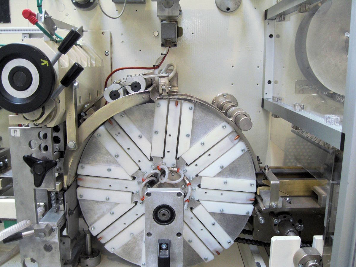 - pocket star-wheel to wrap the film around the products (8 pockets)