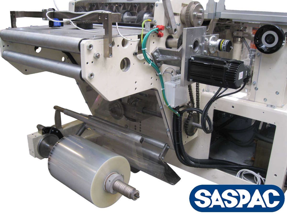 - Portabobine a 90° rispetto al flusso del prodotto.